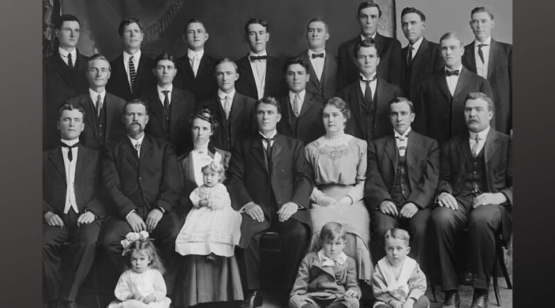 Missionários na Missão México junto com o Presidente Rey L. Pratt e sua família. Foto tirada em 1911. Fonte: Church News.