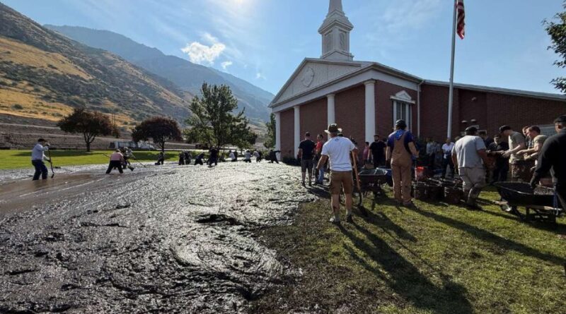 O fluxo de terra e detritos desceu pelas ruas, cobrindo estradas e soterrando uma capela de A Igreja de Jesus Cristo dos Santos dos Últimos Dias com mais de um metro de lama.