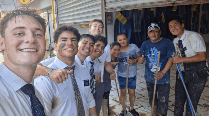Em meio a essa realidade, um grupo de missionários decidiu agir. Com fé, pás e vassouras, começaram a bater de porta em porta e oferecer ajuda. Alguns vizinhos ficaram surpresos ao vê-los trabalhando sob o sol e a lama, ainda usando seus trajes característicos. Em vídeos que circulam online, eles podem ser vistos carregando água, limpando pisos e removendo móveis danificados.